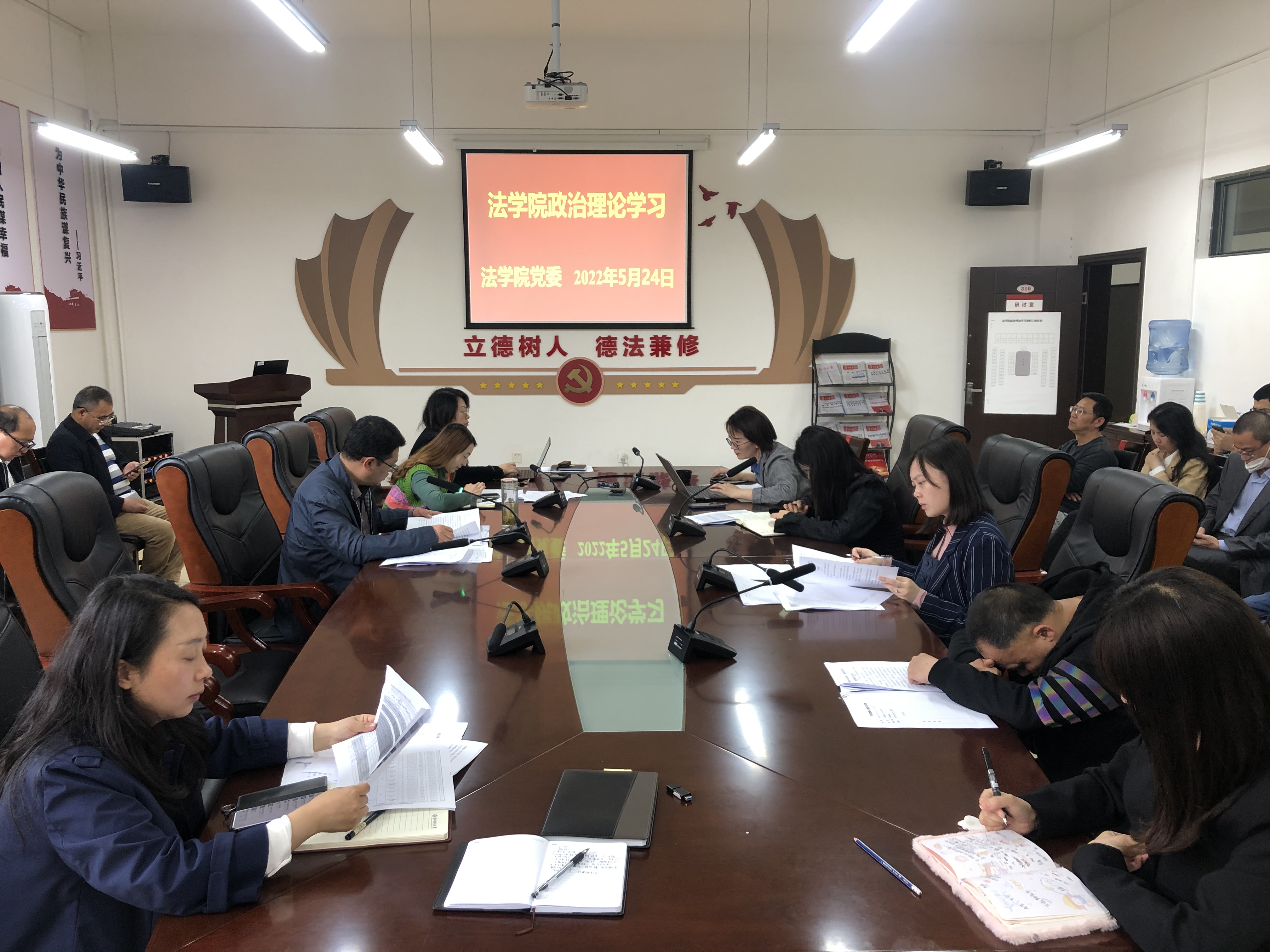 (法学院 图文/报道 徐方)2022年5月24日下午,法学院党委在文德楼A8-310会议室围绕“深入学习领会‘两个确立’的决定性意义 ”专题组织召开第六次教职工政治理论集体学习集体研讨会议。院领导及全院教职工出席会议,院党委书记詹伟主持会议。