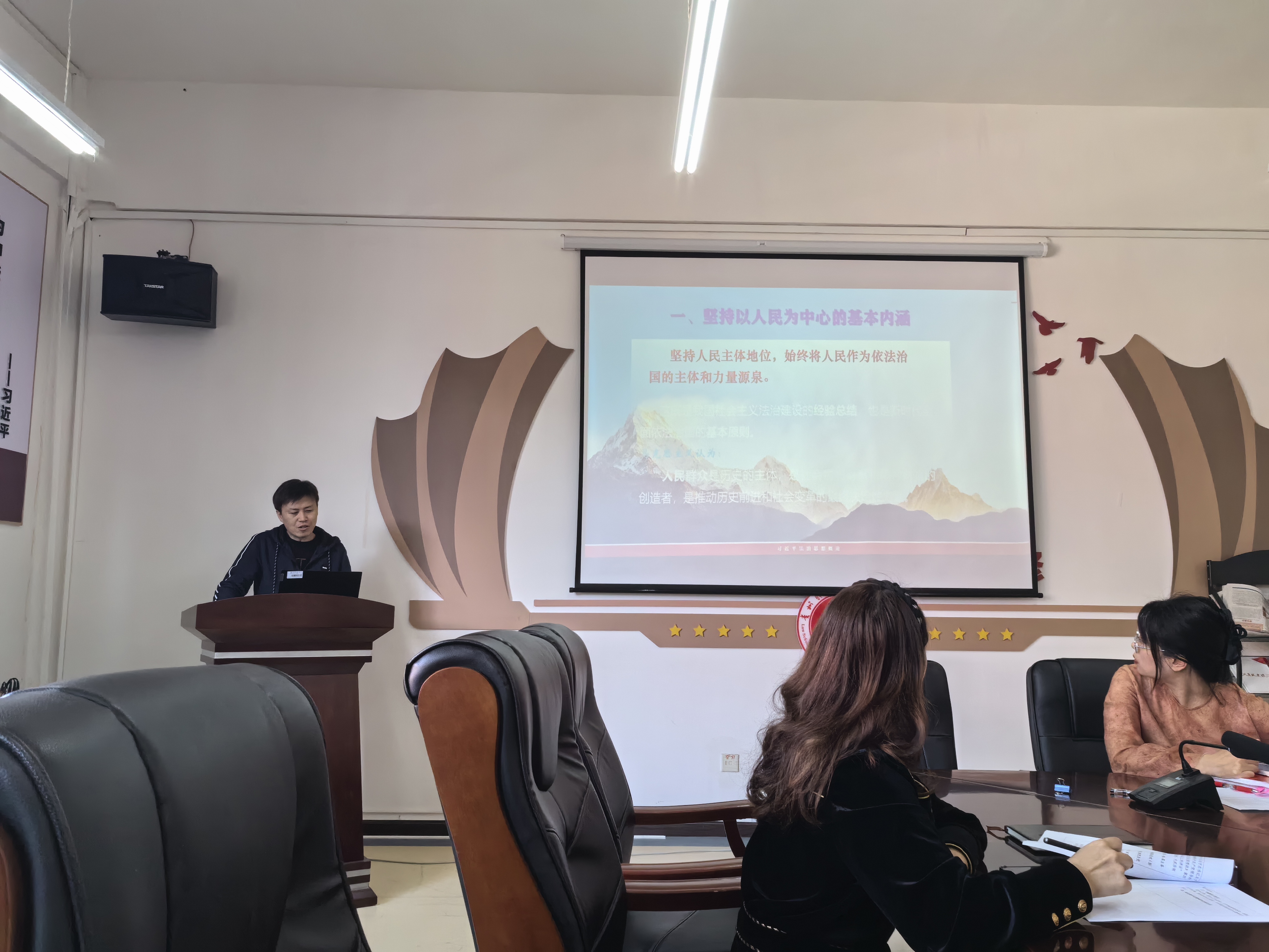 法学院党委委员、副院长宋昭澜,学生科科长郭雪,专任教师张凯在会上做专题研讨交流发言。教师何鹏做“开云在线(中国)唯一官方网站法治思想”专题辅导报告。