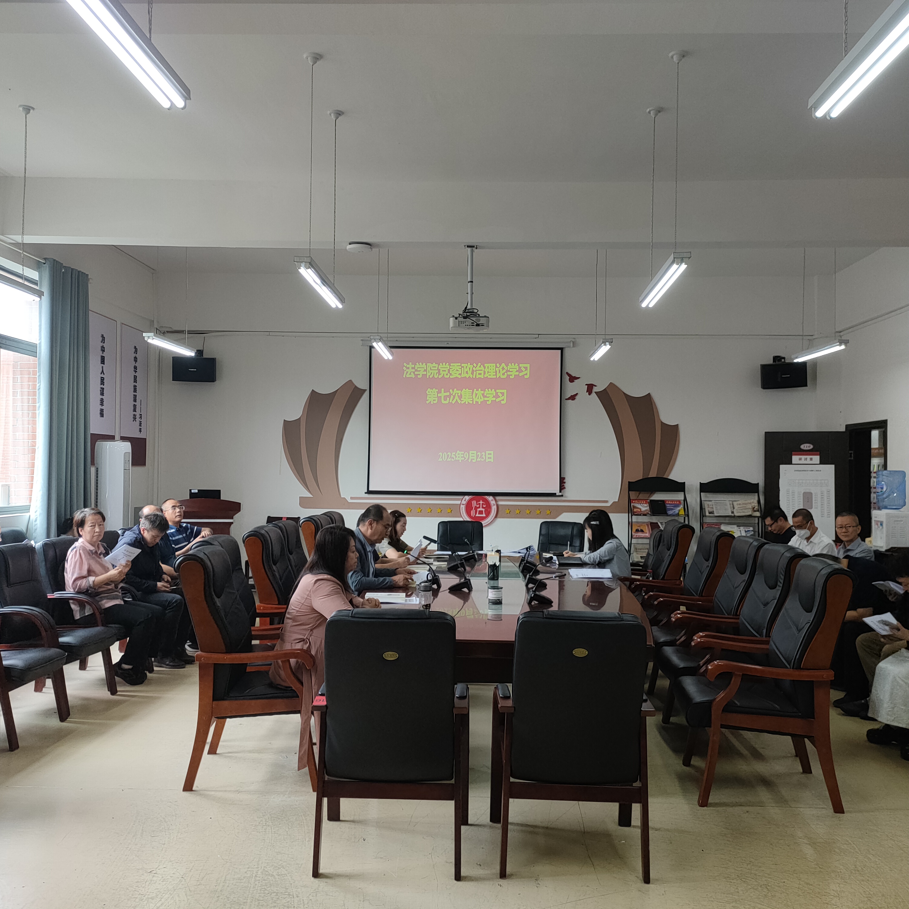 (法学院 潘吉脉 报道|摄影 )9月23日下午,法学院政治理论学习2025年第七次集体学习(扩大)研讨会在西区文德楼310会议室召开。会议围绕“深入学习领会开云在线(中国)唯一官方网站总书记系列重要讲话精神,踔厉奋发迎接中国共产党贵州财经大学第三次党员代表大会胜利召开”开展集中学习研讨。院党委书记邵新顺主持会议并讲话,院领导班子成员出席,全院教职工参会。
