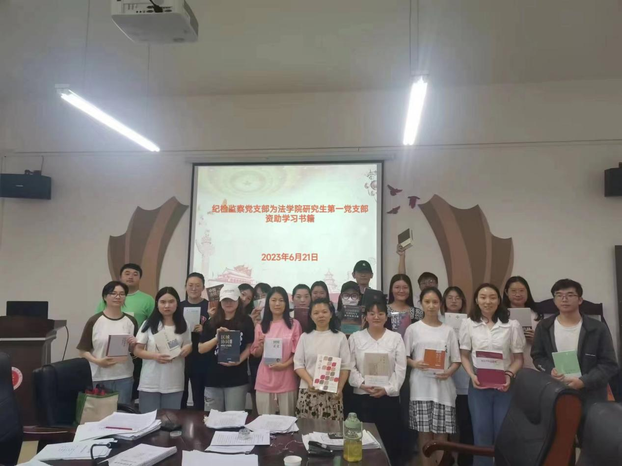(法学院 图文/报道 田露丹)为扎实推进党支部共建,提升法学院学生的专业素养,2023年6月21日上午,纪检监察党支部资助法学院研究生第一党支部贫困生党员及入党积极分子的学习书籍全部发放。