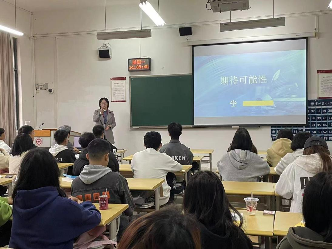 陆敏博士则以生活中的灵魂三问:你在期待什么?社会对你有什么期待?法对你的期待是什么?引出讨论的主题:期待可能性。她首先阐释了期待可能性的内涵,以通说理论认为的德国“癖马案”和我国“亲亲得相首匿”制度展开期待可能性由来的反思和审视,同时,以期待可能性司法适用引发同学们对“法不强人所难”“同情弱者、缓和刑法僵化与司法现实多样化”的思考,并深刻感受法律的温度。借此鼓励同学们热爱自己的专业,为自己选择成为一名法律人而感到无比的荣光。