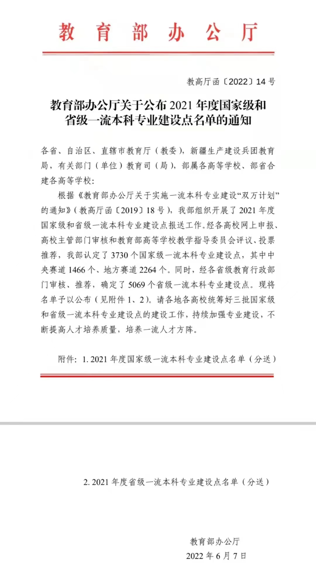 近日,教育部办公厅发布《关于公布2021年度国家级和省级一流本科专业建设点名单的通知》,贵州财经大学共有包括法学在内的6个本科专业获批国家级一流本科专业建设点。