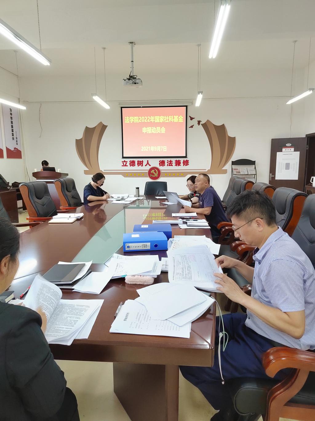 2021年9月7日,法学院2022年度国家社科基金课题申报动员会在文德楼A8-310会议室召开。参加会议的人员有法学院全体专任教师,会议由陈玉梅副院长(正处级、主持工作)主持。