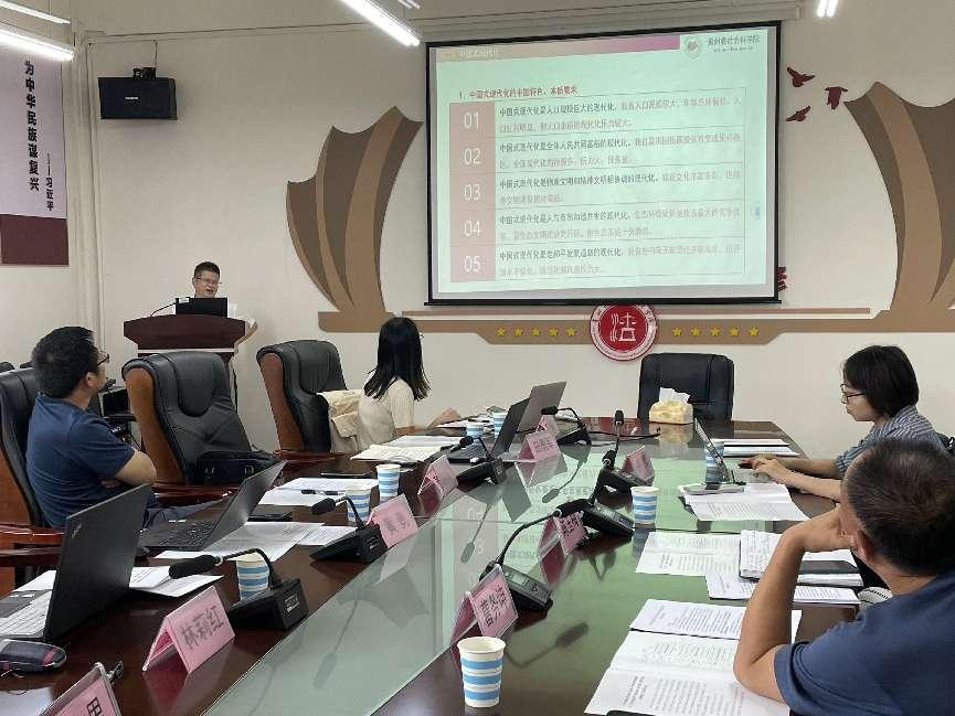 (法学院 图片 李玉兰/报道 谷骞)为加强贵州推进中国式现代化的研究,法学院邀请了武汉大学、贵州省社会科学院、贵州省委党校、广东金融学院、贵州理工学院的专家、学者,于7月19日在法学院310会议室举办会议,共同研讨贵州推进中国式现代化的核心要求与制度保障、贵州推进“放管服”改革的法治保障等问题。会议由法学院副院长曹务坤教授主持,院长陈玉梅教授致辞。