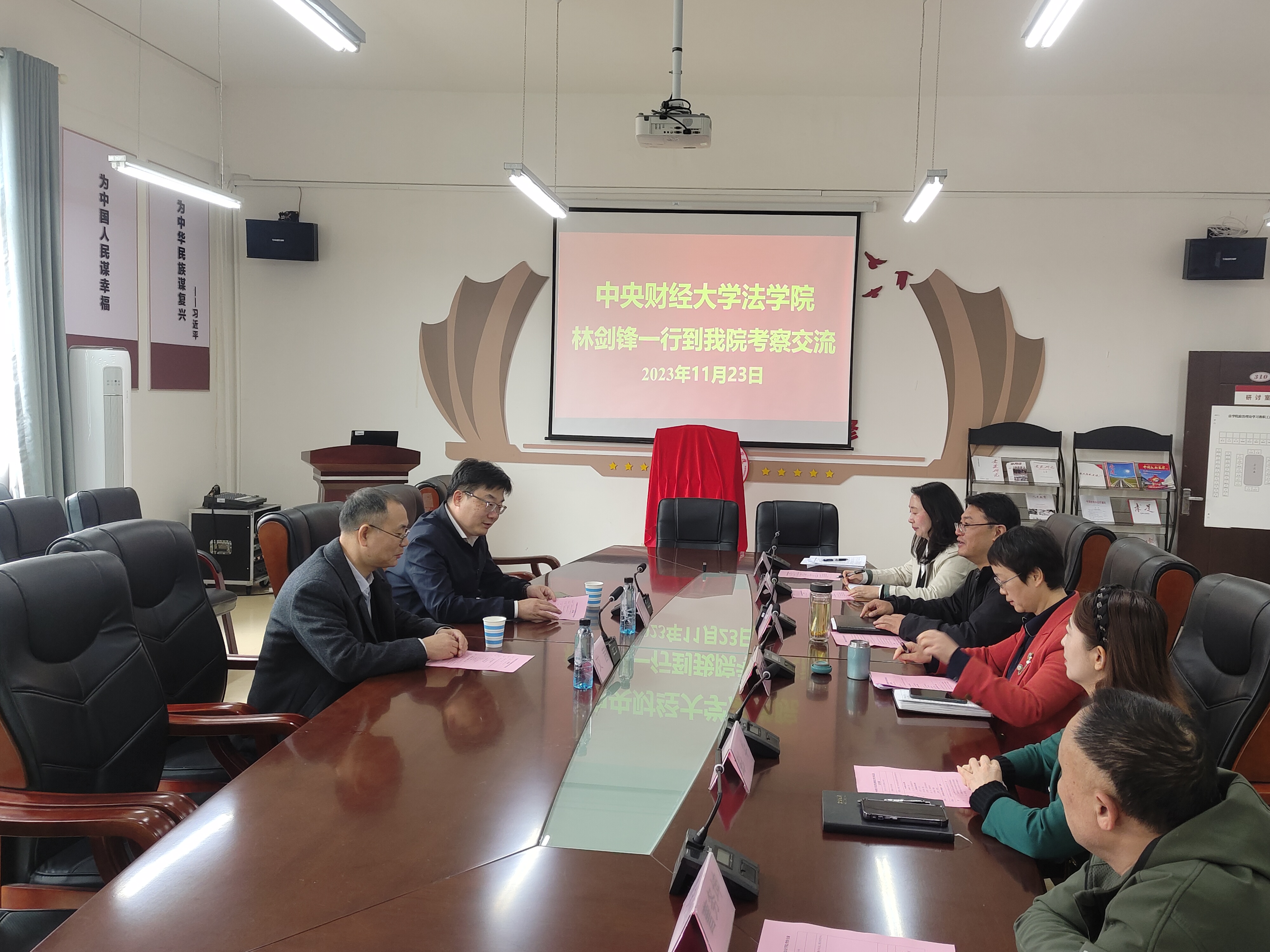 (法学院 图文/报道 张姝)11月23日上午,中央财经大学法学院党委书记林剑锋一行2人到法学院文德楼310召开交流座谈会。法学院全体班子成员参加会议。会议由学院院长陈玉梅主持。