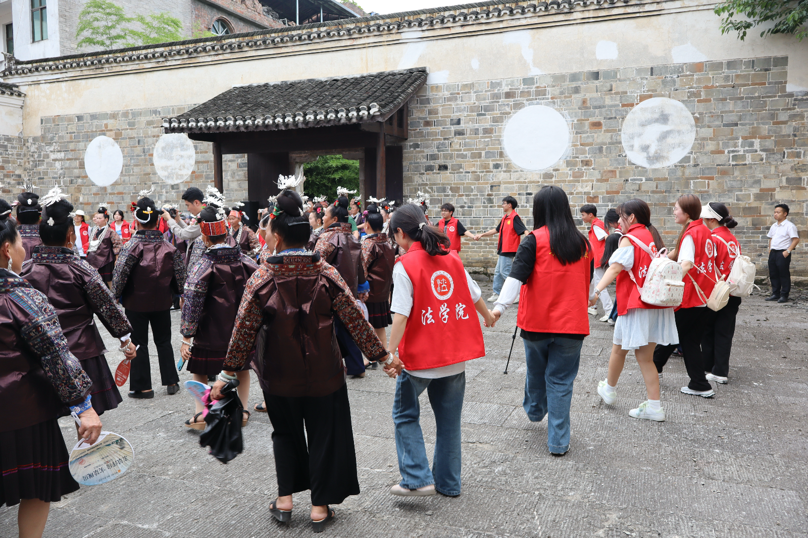 参观完博物馆后,实践团队来到当地村寨与村民展开了亲切的互动。同学们首先向村民们介绍了本次 “三下乡” 活动的目的和意义,随后围绕民族文化保护、乡村法治建设等话题与村民们进行了深入交流。在交流中,村民们热情地向同学们讲述了苗族的传统习俗和生活方式。同时,同学们也结合法学专业知识,为村民们普及了一些与日常生活密切相关的法律知识。针对村民们关心的土地纠纷、婚姻家庭、财产继承等问题,同学们耐心地进行了解答。在苗学研究院,实践团队还与村民们一起舞蹈,让同学们感受到了苗族人民的热情与活力。