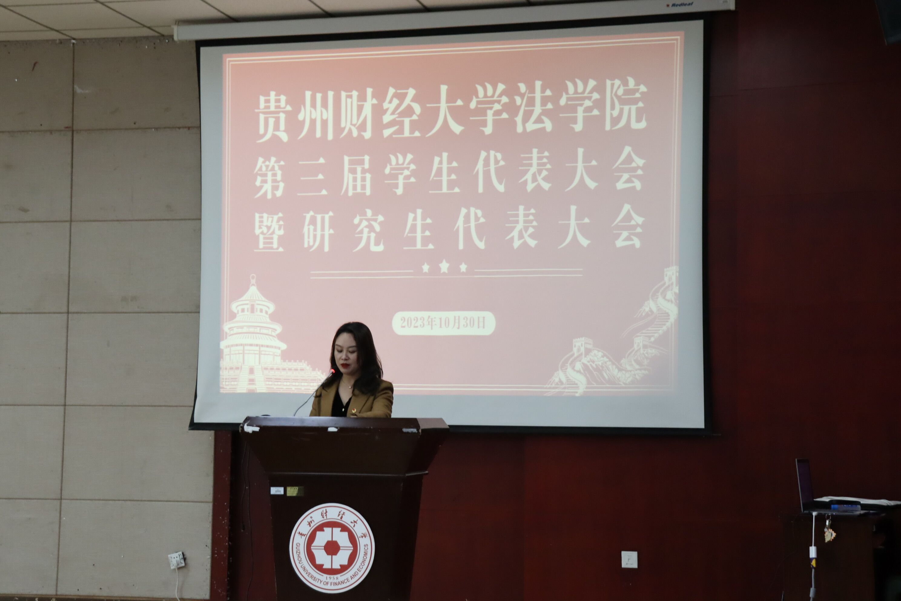 (法学院 余莉雯/报道 况守佳/摄影)2023年10月30日下午,法学院第三届学生代表大会暨研究生代表大会在正德楼114会议室召开。校团委书记雍新艳,法学院党委书记詹伟、正处级专职组织员兼纪委书记代莉莎、党委副书记彭华、团委负责老师刘美伶及79名学生代表出席本次大会。