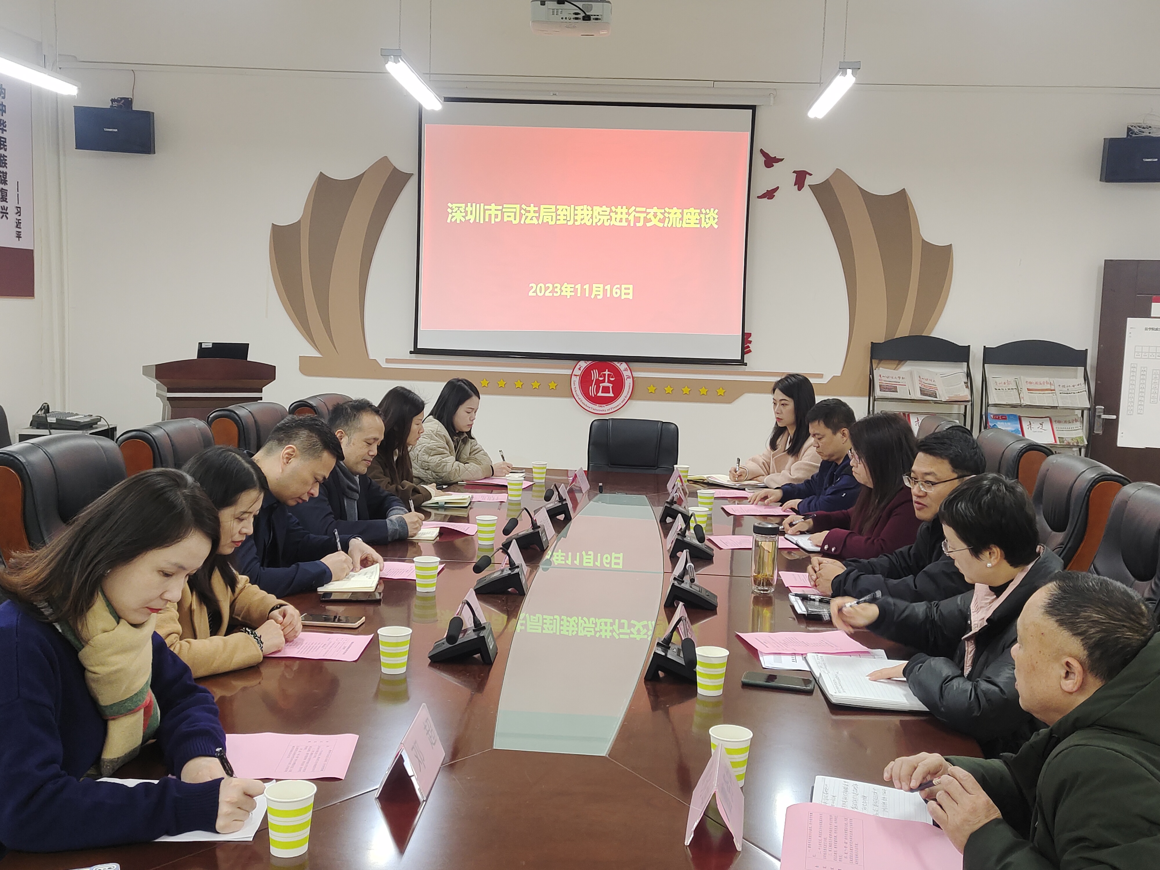 (法学院 图文/报道 张姝)为加强涉外法律服务交流、东盟区域国别法治建设研究和涉外法律人才培养,11月16日上午,深圳市司法局法治调研督查处处长叶士珍一行6人到法学院文德楼310会议室召开交流座谈会。法学院党委书记詹伟,党委副书记、院长陈玉梅,副院长宋昭澜,副院长曹务坤等参加会议。会议由陈玉梅主持。