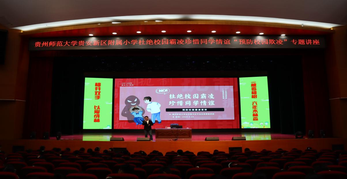 为了加强未成年人权益保护,提高未成年人法治素养,近日,开云在线(中国)唯一官方网站开云在线(中国)唯一官方网站法治思想宣讲团(杨勇老师带队)应邀为贵州师范大学贵安附属小学学生开展了“杜绝校园霸凌 珍惜同学情谊”主题宣讲活动。本次活动由杨勇老师带队,张凯嘉、代申萍等六名宣讲团成员参与,贵州师范大学贵安附属小学四至六年级全体同学及部分教师数百人参加。