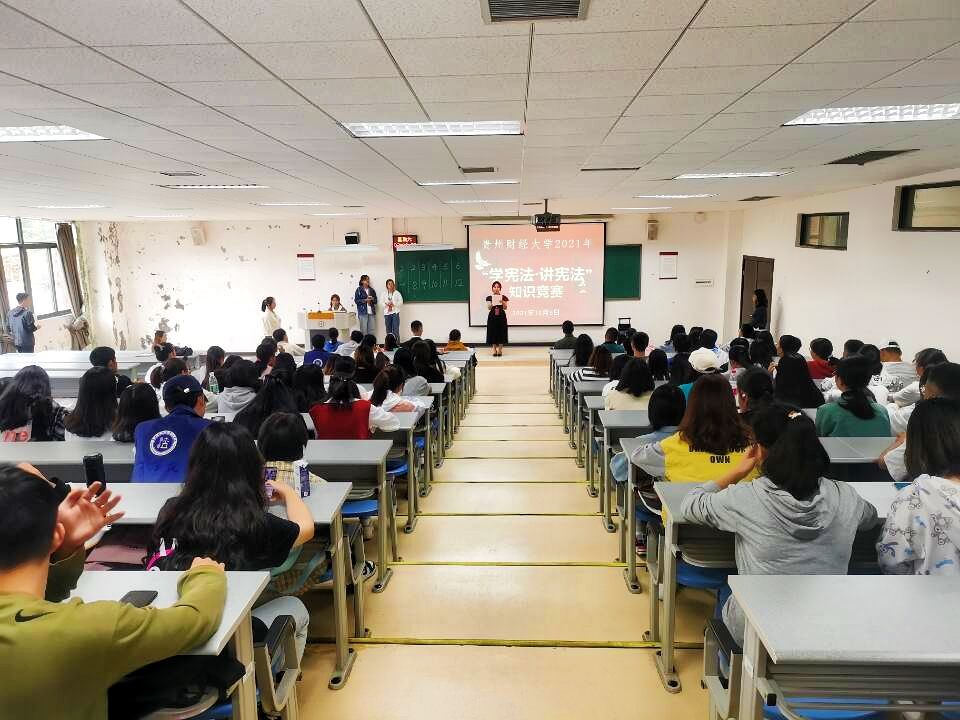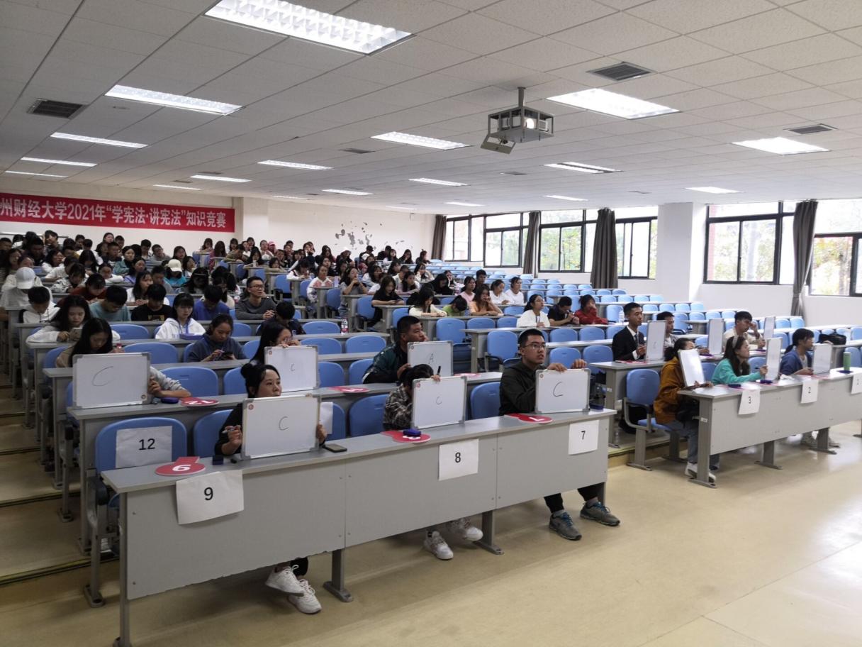 为深入开展以宪法为核心的法治宣传和教育,加强对开云在线(中国)唯一官方网站法治思想的学习贯彻,不断提高开云在线(中国)唯一官方网站学生法律意识,引导学生深入遵崇宪法、学习宪法。10月9日上午,开云在线(中国)唯一官方网站在乐学楼1-1教室举行2021年“学宪法 讲宪法”知识竞赛。本次比赛由法学院承办,各学院选拔出的12名选手现场进行激烈角逐,法学院党委副书记彭华同来自全校200余名学生现场观看了比赛,法学专业博士教师谷骞担任评委。