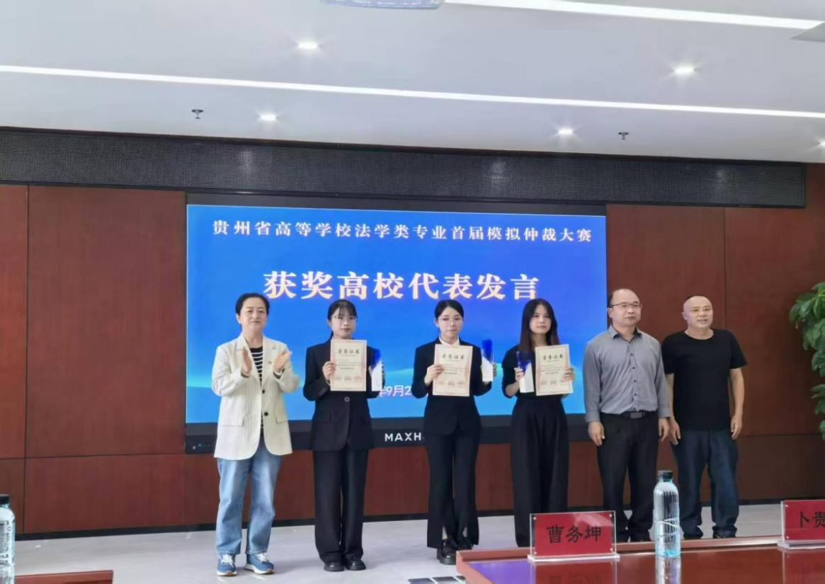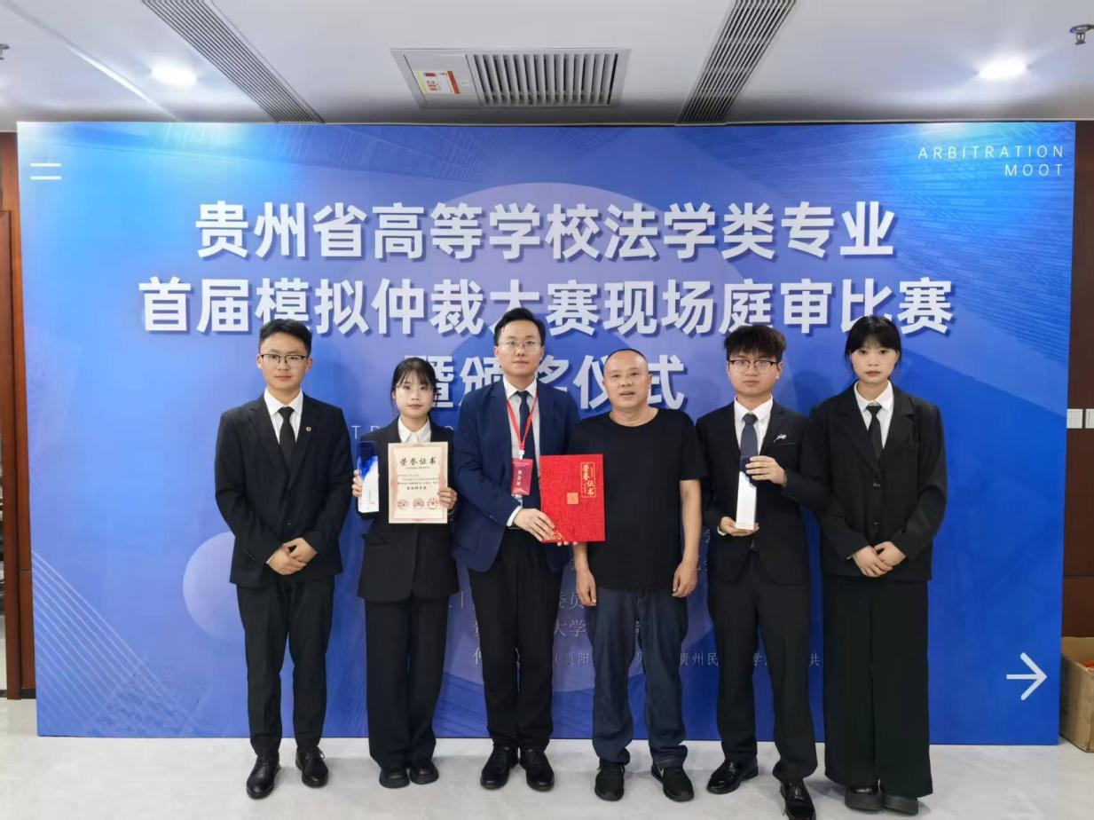 (法学院 饶子豪 报道、摄影)2025年9月27日,由贵州省法学会法学教育研究会、贵州省法学会仲裁法学研究会联合主办,贵阳仲裁委员会、贵州民族大学法学院及仲裁学院(贵阳仲裁委员会、贵州民族大学共建)共同承办的“贵州省高等学校法学类专业首届模拟仲裁大赛”盛大举行。本次赛事汇聚了来自省内14所高校的精英队伍,经过激烈角逐,开云在线(中国)唯一官方网站法学院代表队凭借扎实的专业功底与卓越的团队协作能力脱颖而出,最终荣膺季军。