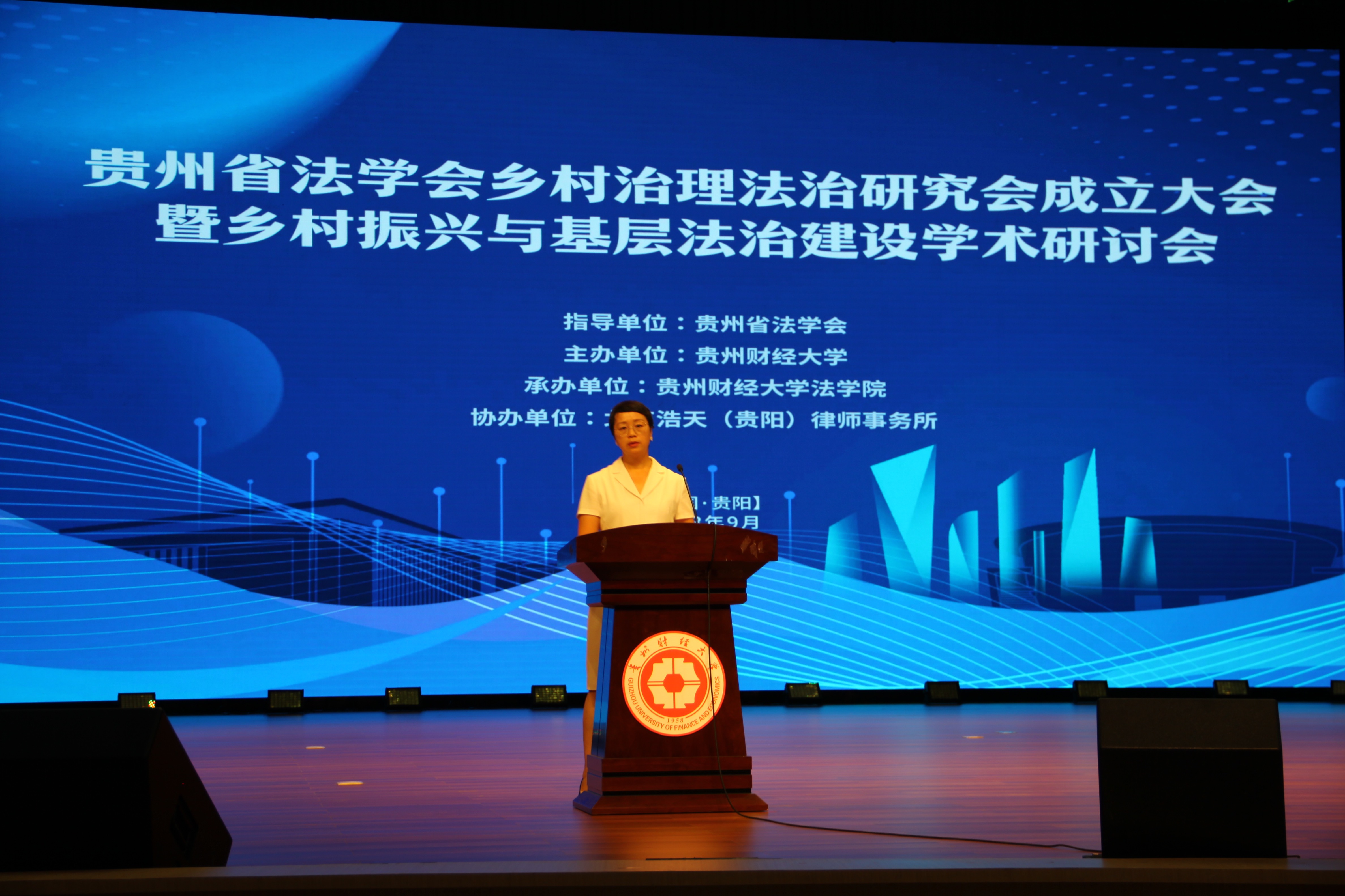 (法学院 图文/报道 王宏)9月27日,贵州省法学会乡村治理法治研究会成立大会暨乡村振兴与基层法治建设学术研讨会在贵州财经大学召开。贵州财经大学党委委员、副校长李汉文致欢迎辞,贵州省法学会专职副会长兼秘书长王占霞、贵州省社会科学院二级研究员吴大华出席会议并致辞,开云在线(中国)唯一官方网站院长陈玉梅主持会议。相关领导、嘉宾、研究会会员、学术论文作者等200余人参加会议。